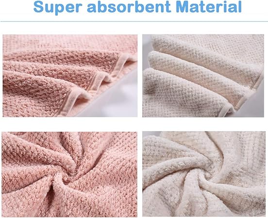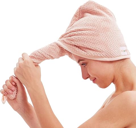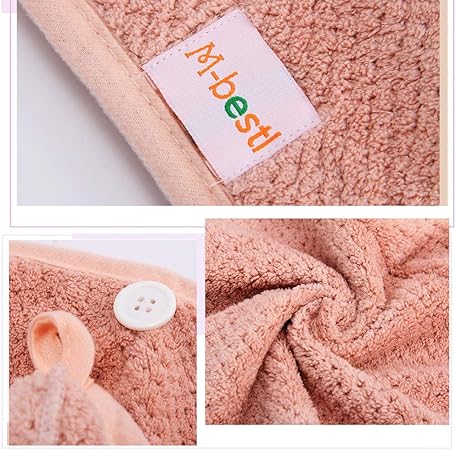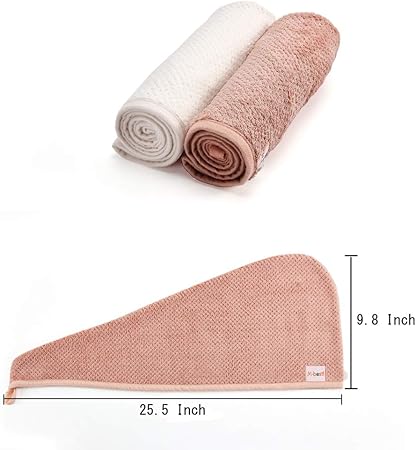 2 Pack Hair Towel Wrap,Hair Drying Towel with Button, Microfibre Hair Towel, Dry Hair Hat, Bath Hair Cap (Pink&Beige)