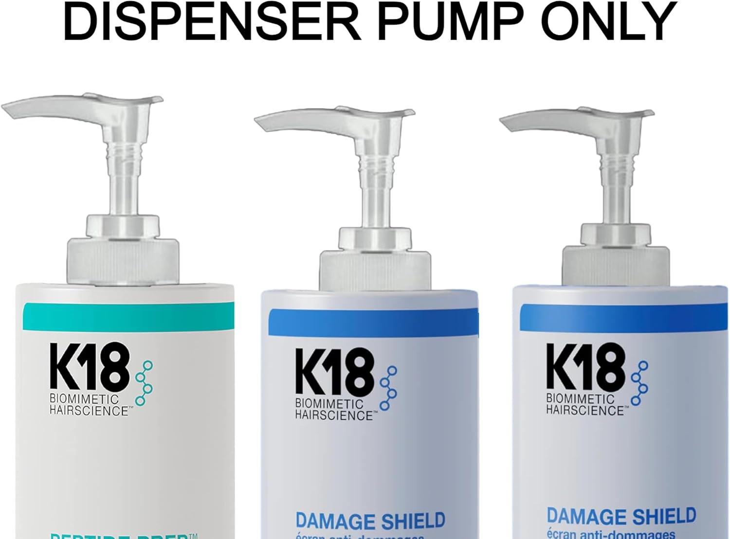 - One White 4.5 Inch Dispenser Pump Compatible with K18 Peptide Prep Detox Shampoo, K 18 Damage Shield pH Protective Shampoo & K-18 Damage Shield Protective Conditioner (8.5oz / 250 ml). Dispenser pump only. PLEASE NOTE::: These are NOT for the Liter Size Bottles (1000ml / 33.81 oz)