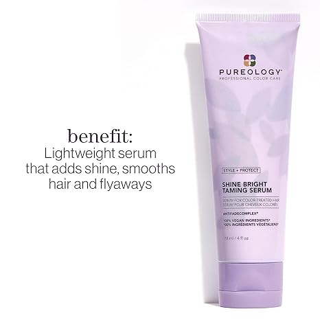 Pureology Hair Serum, Style + Protect Shine Bright, For Dry, Colour-Treated Hair, Tames Flyaways, Smoothes Frizz, Sulfate Free, 118 ML