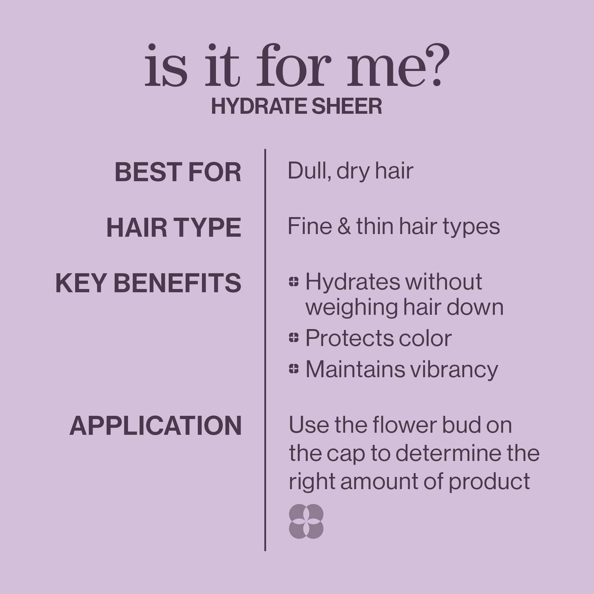Pureology Hydrate Sheer Nourishing Shampoo, For Fine, Colored & Dry Hair, Infused with Wheat Protein, Vitamin E & Eucalyptus Leaf Extract, Vegan & Sulfate-Free Formula