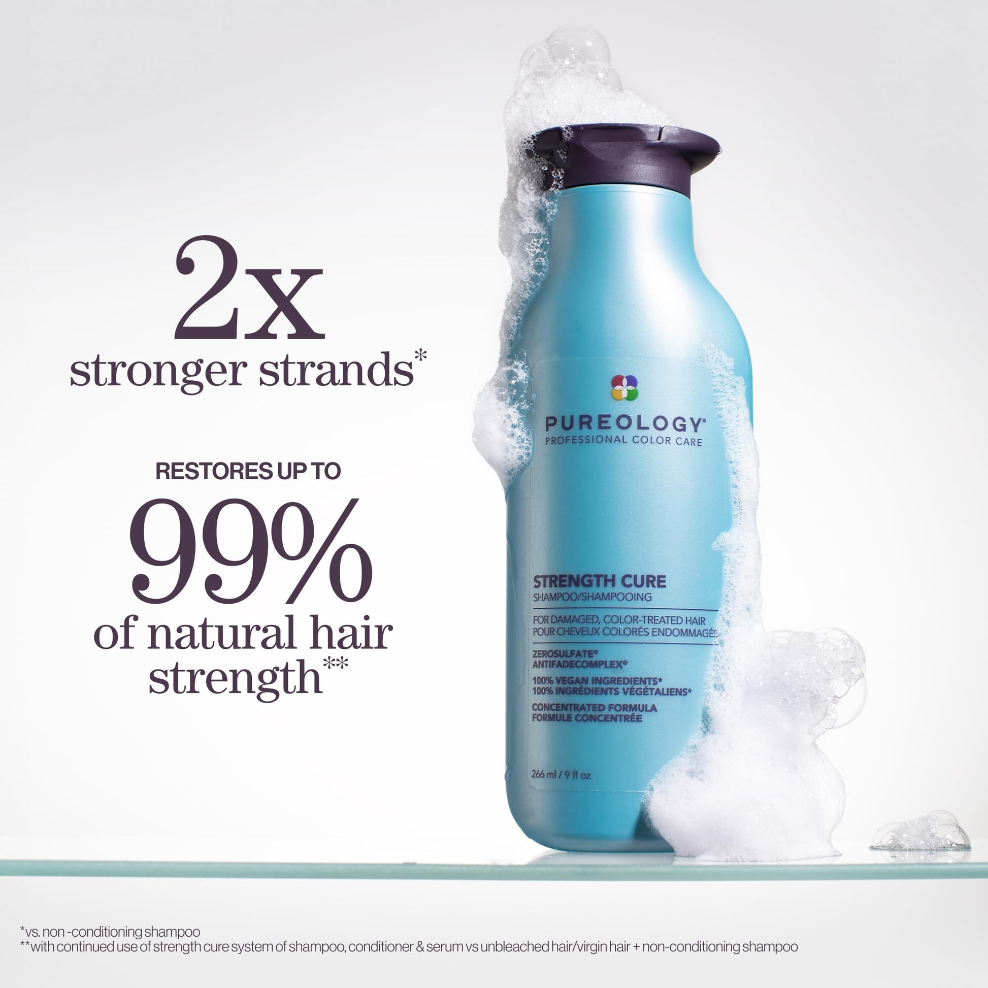 Pureology Strength Cure Shampoo, Strengthening Shampoo, Helps Repair Damaged, Color Treated Hair.Renews Strength and Softness, Vegan, Sulfate-Free, Paraben-Free,